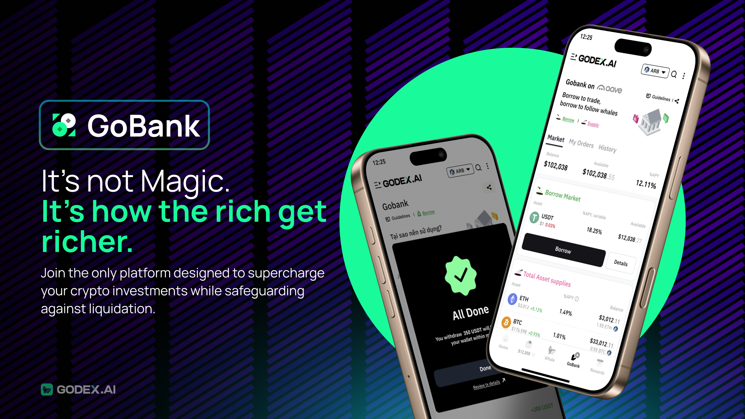 **Gobank in Godex.ai** is a decentralized finance (DeFi) platform built on the Arbitrum blockchain, allowing users to borrow and lend cryptocurrency assets without intermediaries like traditional banks. It is an open-source, decentralized, and fully automated protocol that provides flexible financial solutions within the decentralized finance ecosystem.